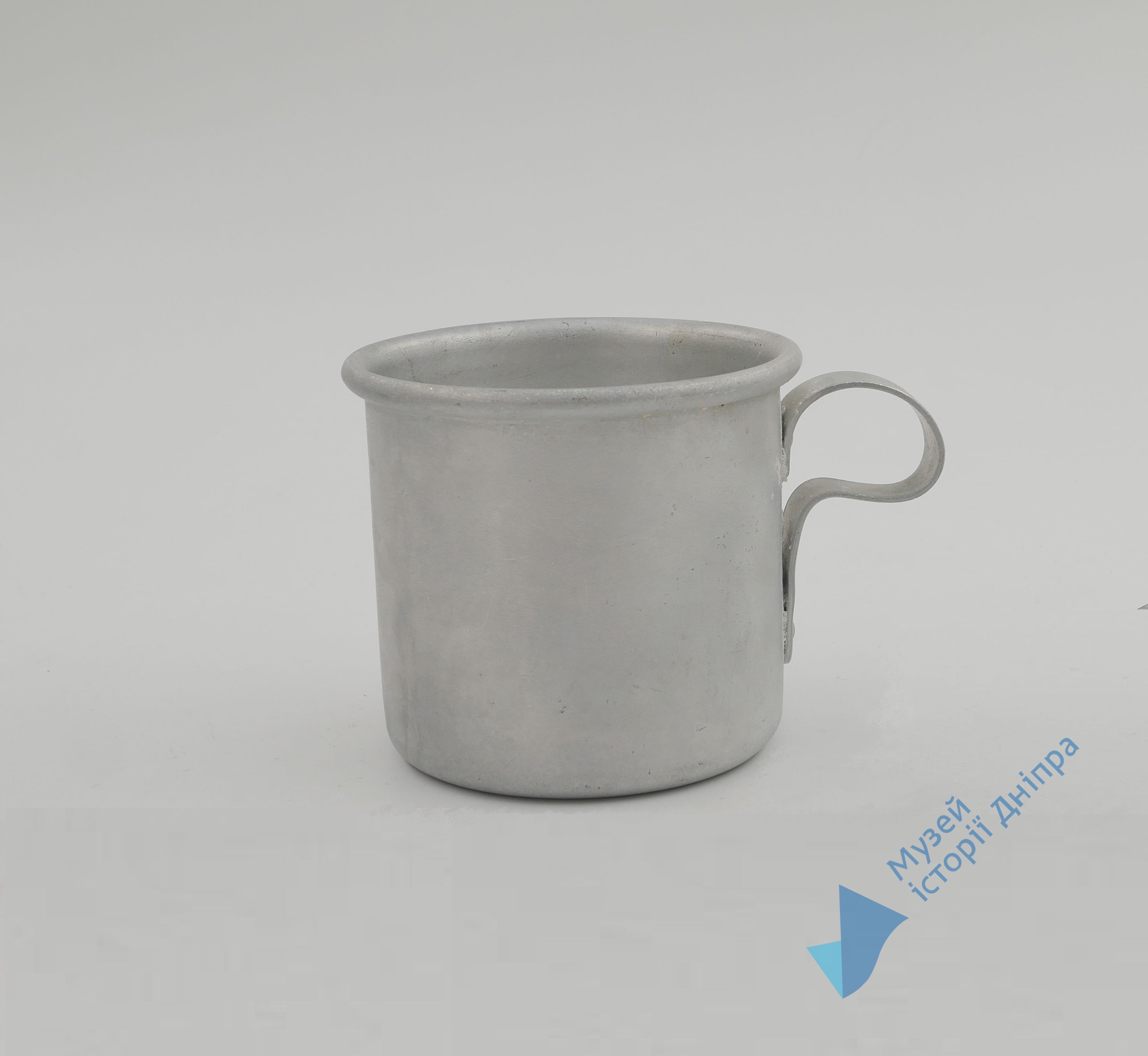 Світло срібного кольору. Циліндричної форми, з ручкою-вушком. На ручці клеймо заводу, напис про вартість та об’єм. Об’єм чашки – 250 мл.